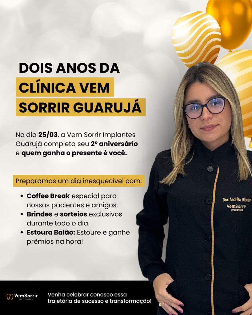 Clínica Vem Sorrir Guarujá | Aniversário – Março 2026 Publicado em 11/03/202611/03/2026 por Grupo Vem Sorrir Venha participar! Agende uma consulta Siga-nos no Instagram Visite o site da clínica Entre em contato: Vem Sorrir Guarujá