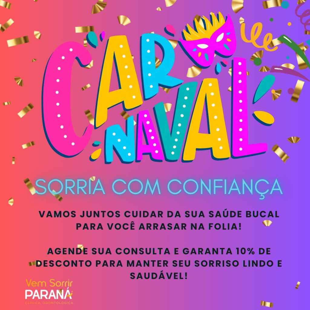 Clínica Vem Sorrir Maringá | Promoção de Carnaval – Fevereiro 2026 Publicado em 14/02/202621/02/2026 por Grupo Vem Sorrir Promoção imperdível! Agende uma consulta Siga-nos no Instagram Visite o site da clínica Entre em contato: Vem Sorrir Maringá