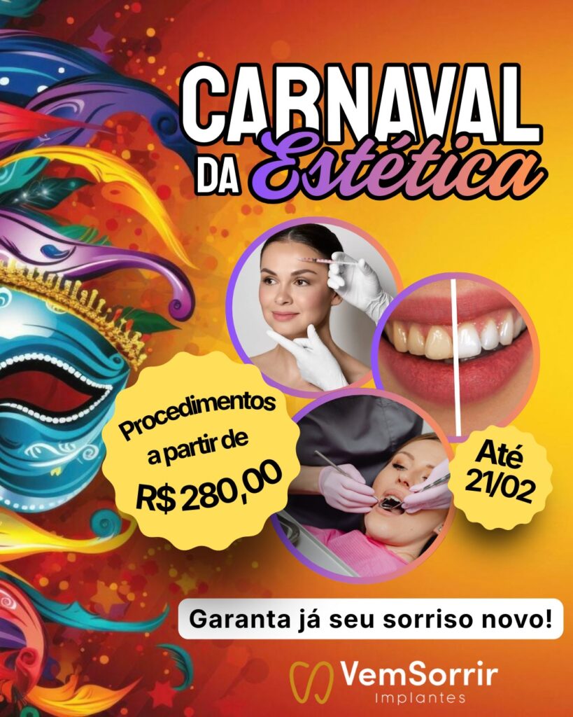 Clínica Vem Sorrir Santos | Promoção de Carnaval – Fevereiro 2026 Publicado em 14/02/202621/02/2026 por Grupo Vem Sorrir Promoção imperdível! Agende uma consulta Siga-nos no Instagram Visite o site da clínica Entre em contato: Vem Sorrir Santos